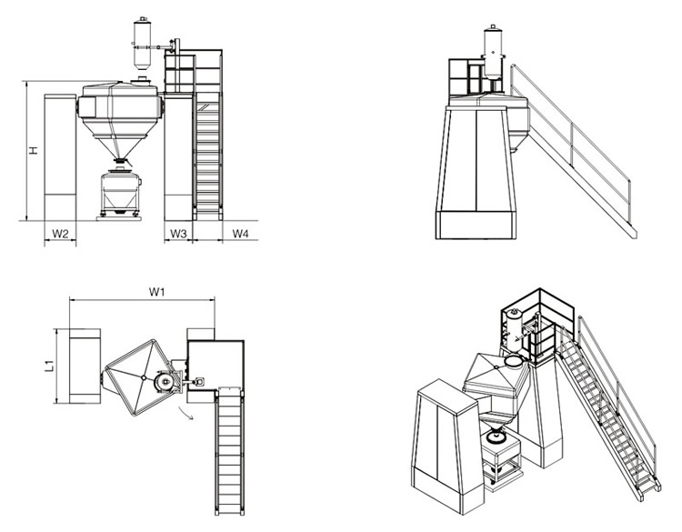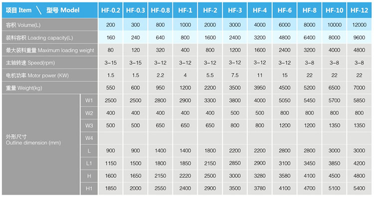 FH料斗混合机经过精心设计,其混合偏角、出料角度、圆弧过度及结构等都达到了理想状态。